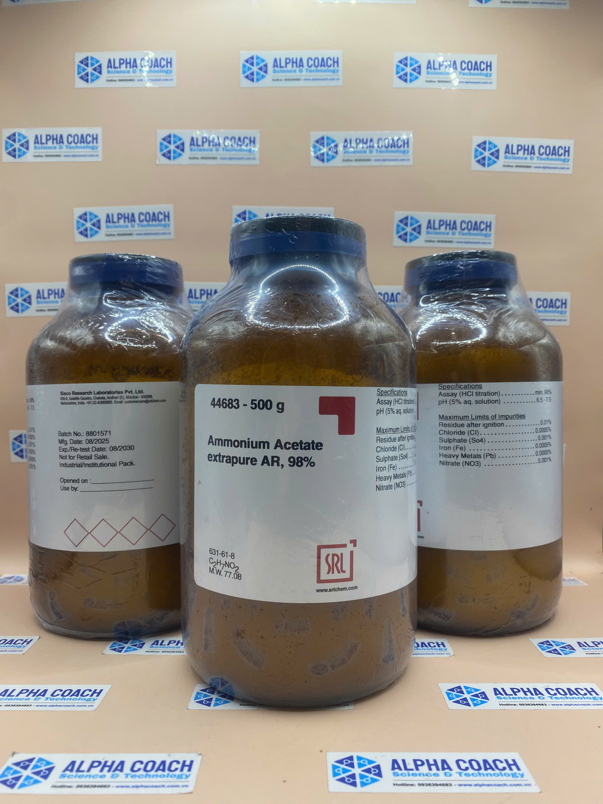 Hoá chất Ammonium Acetate extrapure AR, 98%, lọ 500g, hãng SRL, Ấn Độ