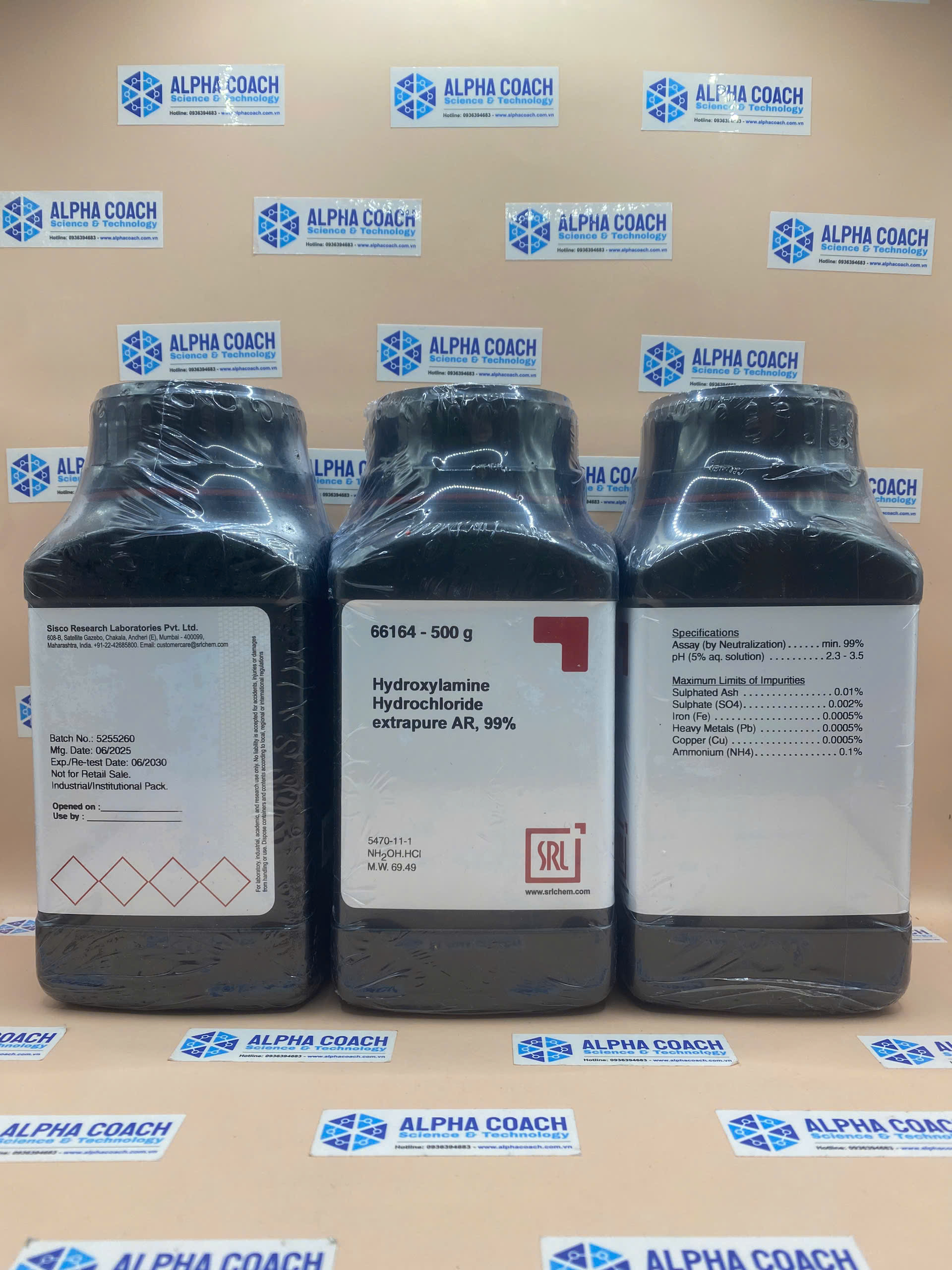 Hoá chất Hydroxylamine Hydrochloride extrapure AR, 99%, lọ 500g, hãng SRL, Ấn Độ