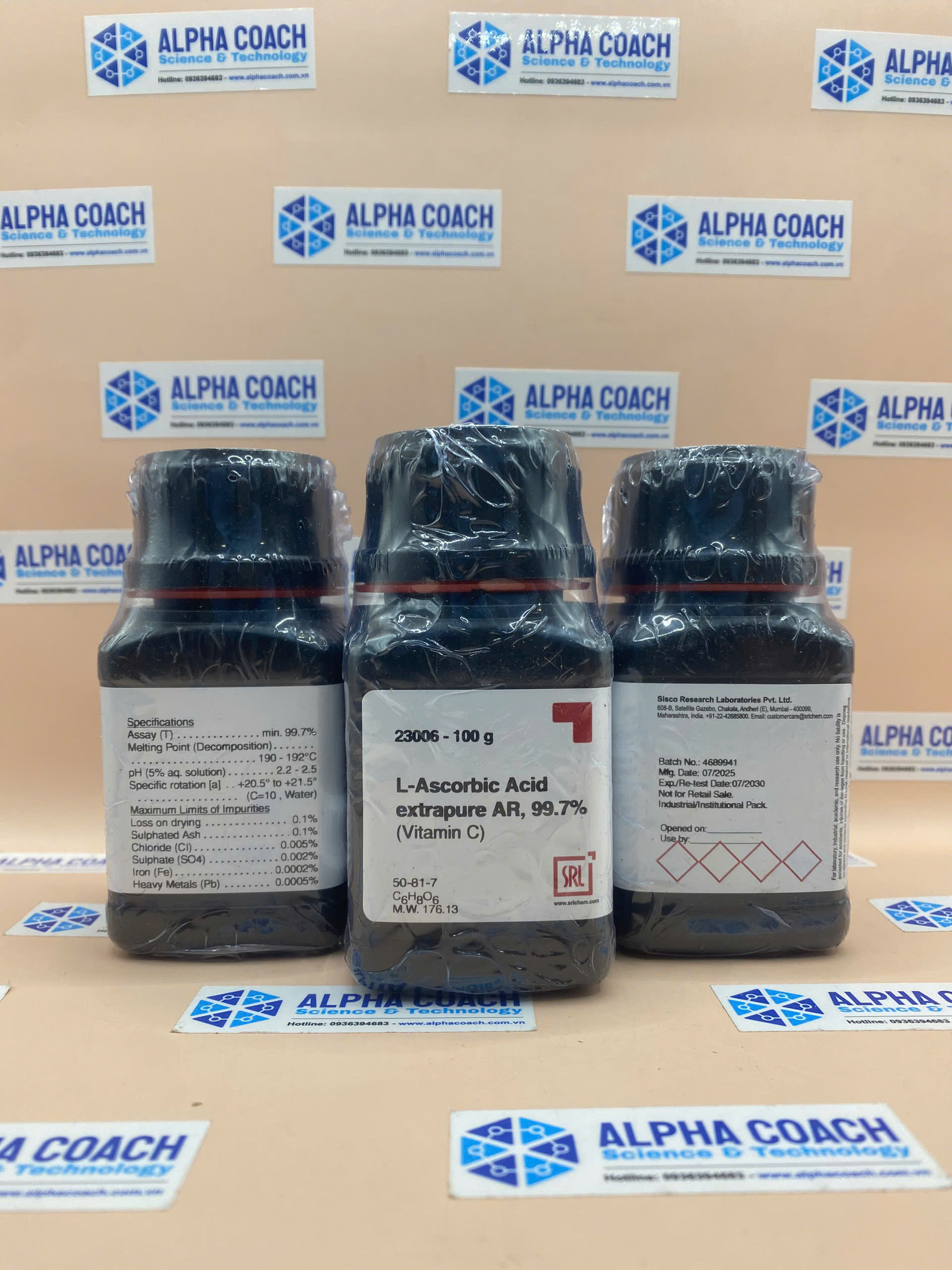 Hoá chất L-Ascorbic Acid extrapure AR, 99.7%, lọ 100g, hãng SRL, Ấn Độ