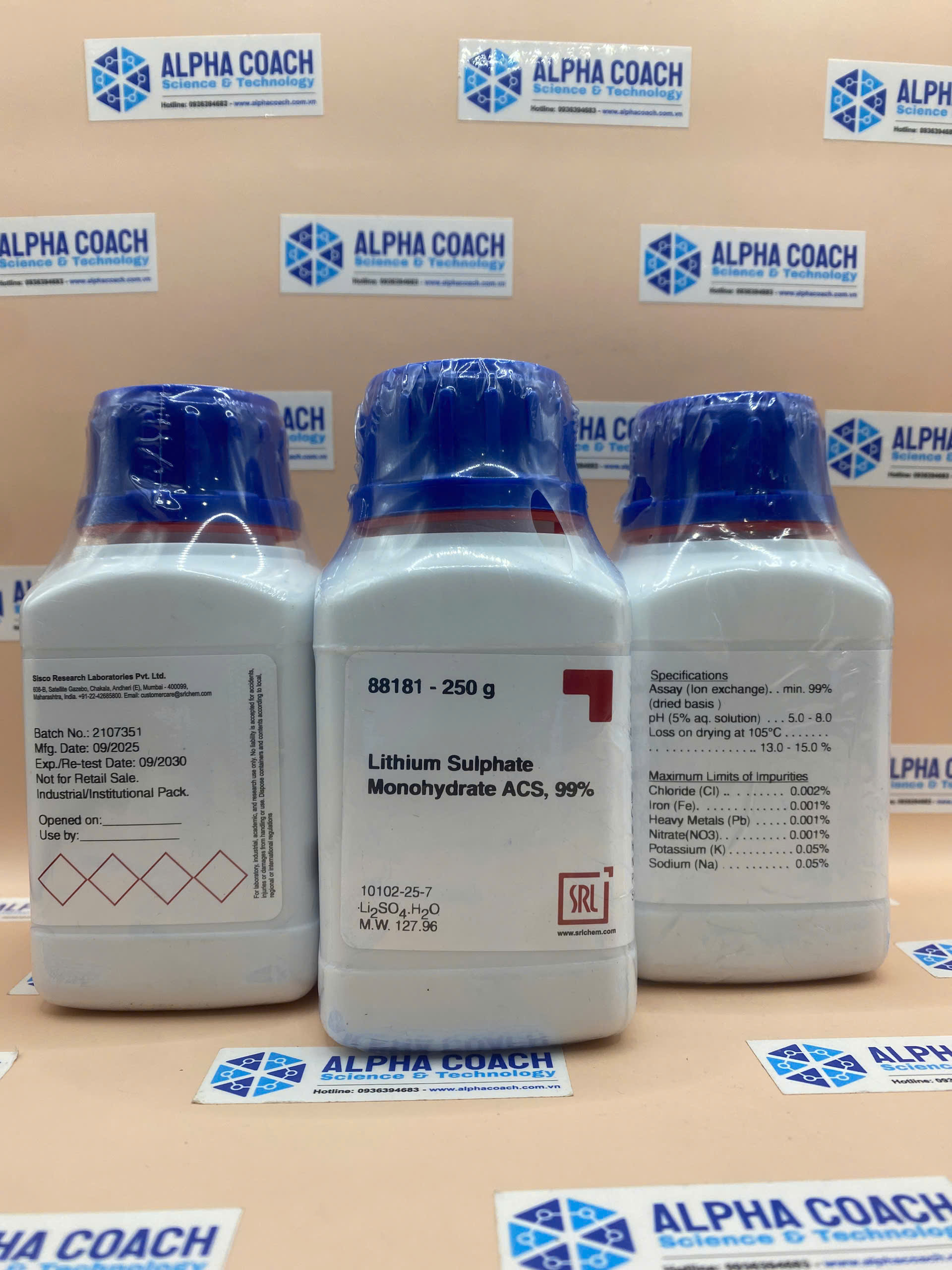 Hoá chất Lithium Sulphate Monohydrate ACS, 99%, lọ 250g, hãng SRL, Ấn Độ