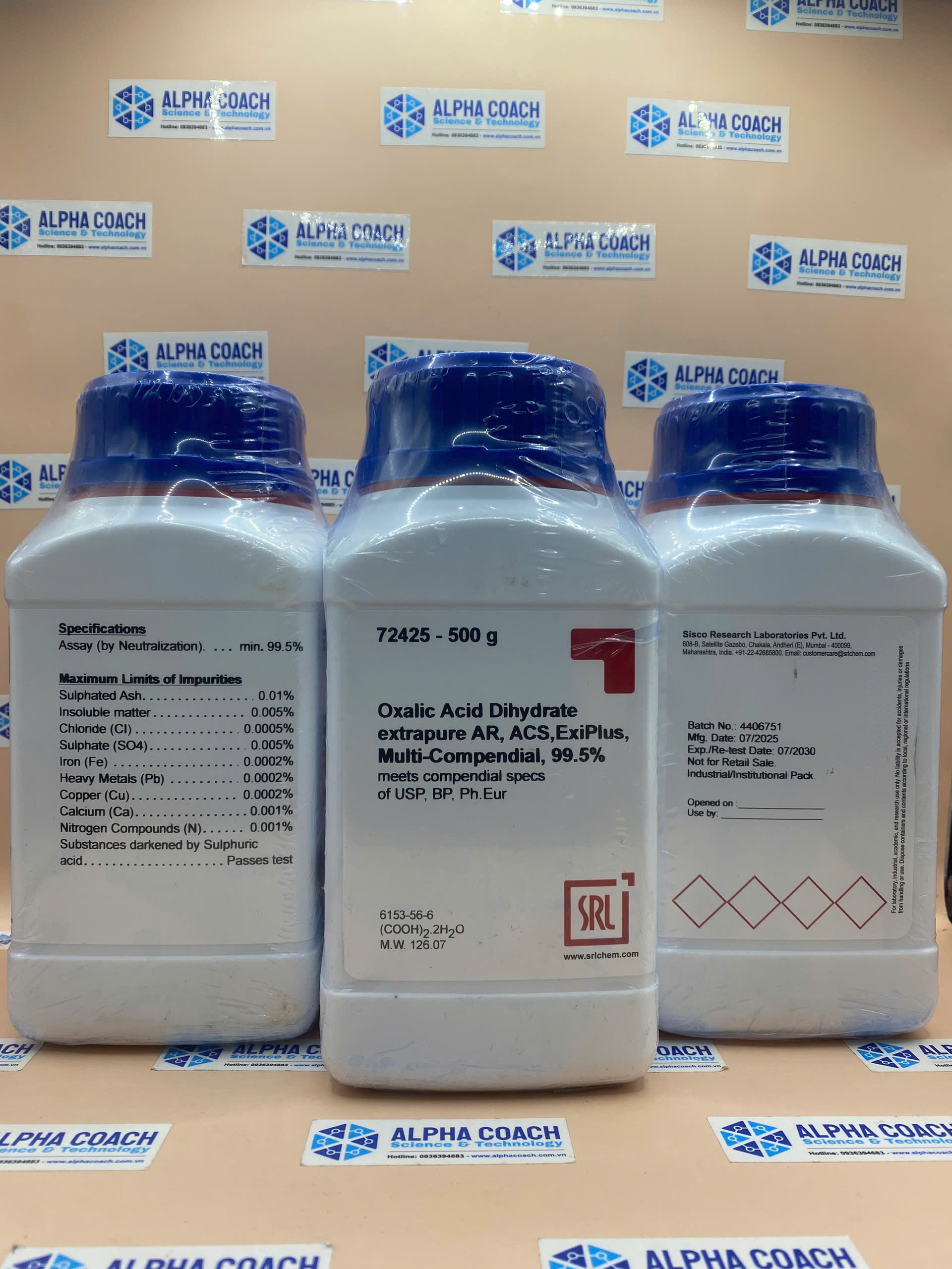 Hoá chất Oxalic Acid Dihydrate extrapure AR, ACS, ExiPlus, Multi-Compendial, 99.5%, lọ 500g, hãng SRL, Ấn Độ