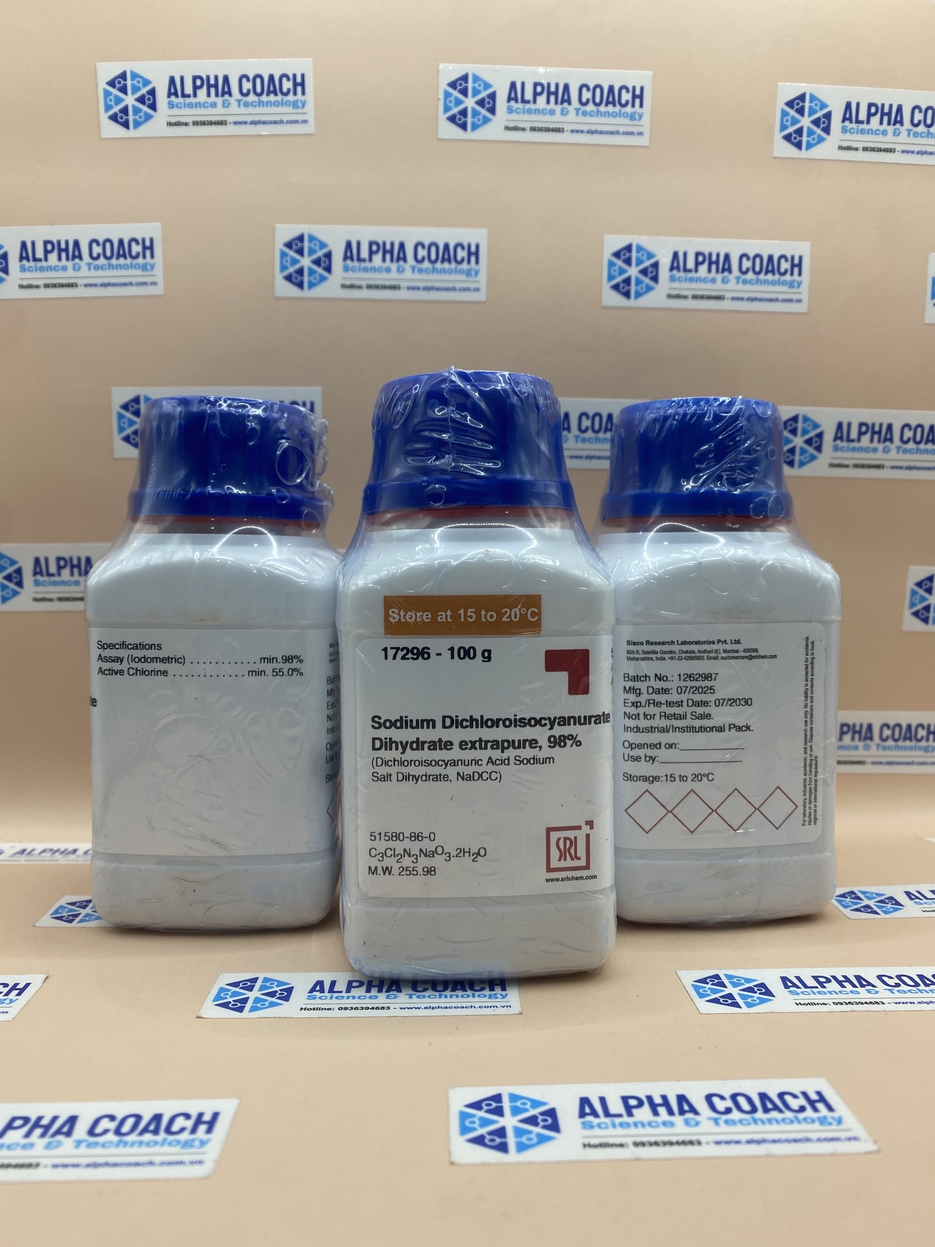 Hoá chất Sodium Dichloroisocyanurate Dihydrate extrapure, 98%, lọ 100g, hãng SRL, Ấn Độ