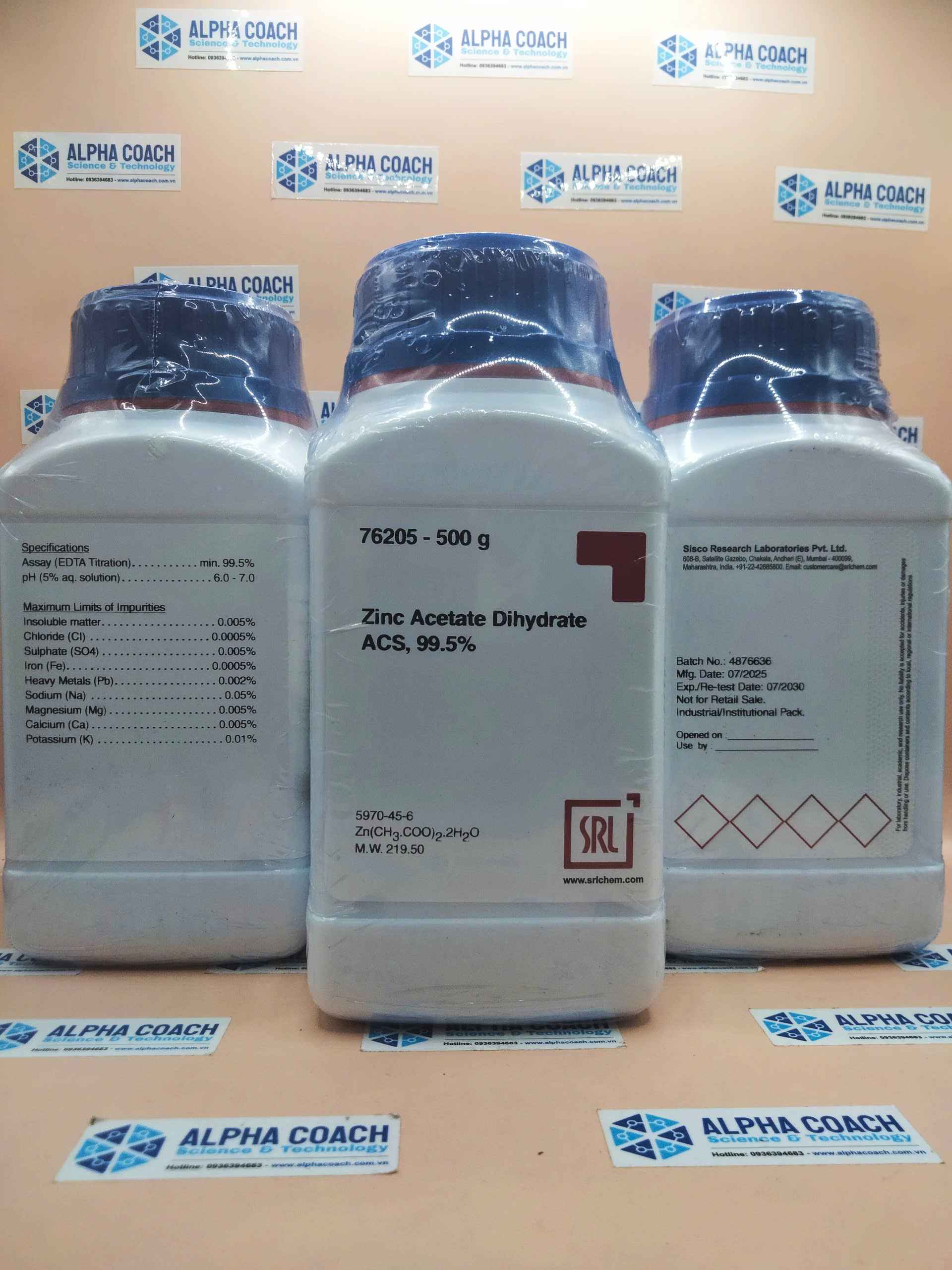 Hoá chất Zinc Acetate Dihydrate ACS, 99.5%, lọ 500g, hãng SRL, Ấn Độ