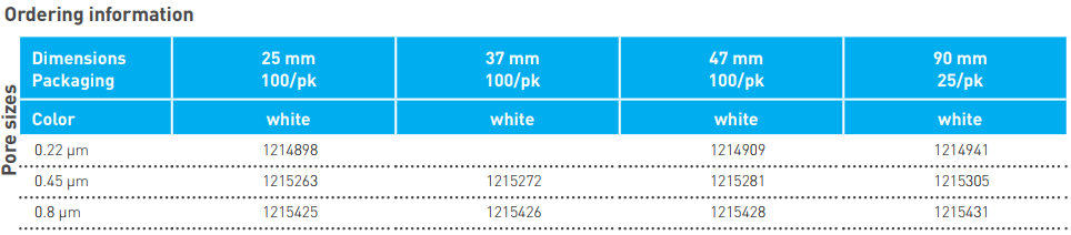 Được khuyến nghị sử dụng cho phân tích hiển vi PCM và TEM trong giám sát amiăng hoặc lấy mẫu kim loại trong không khí xung quanh theo NIOSH.