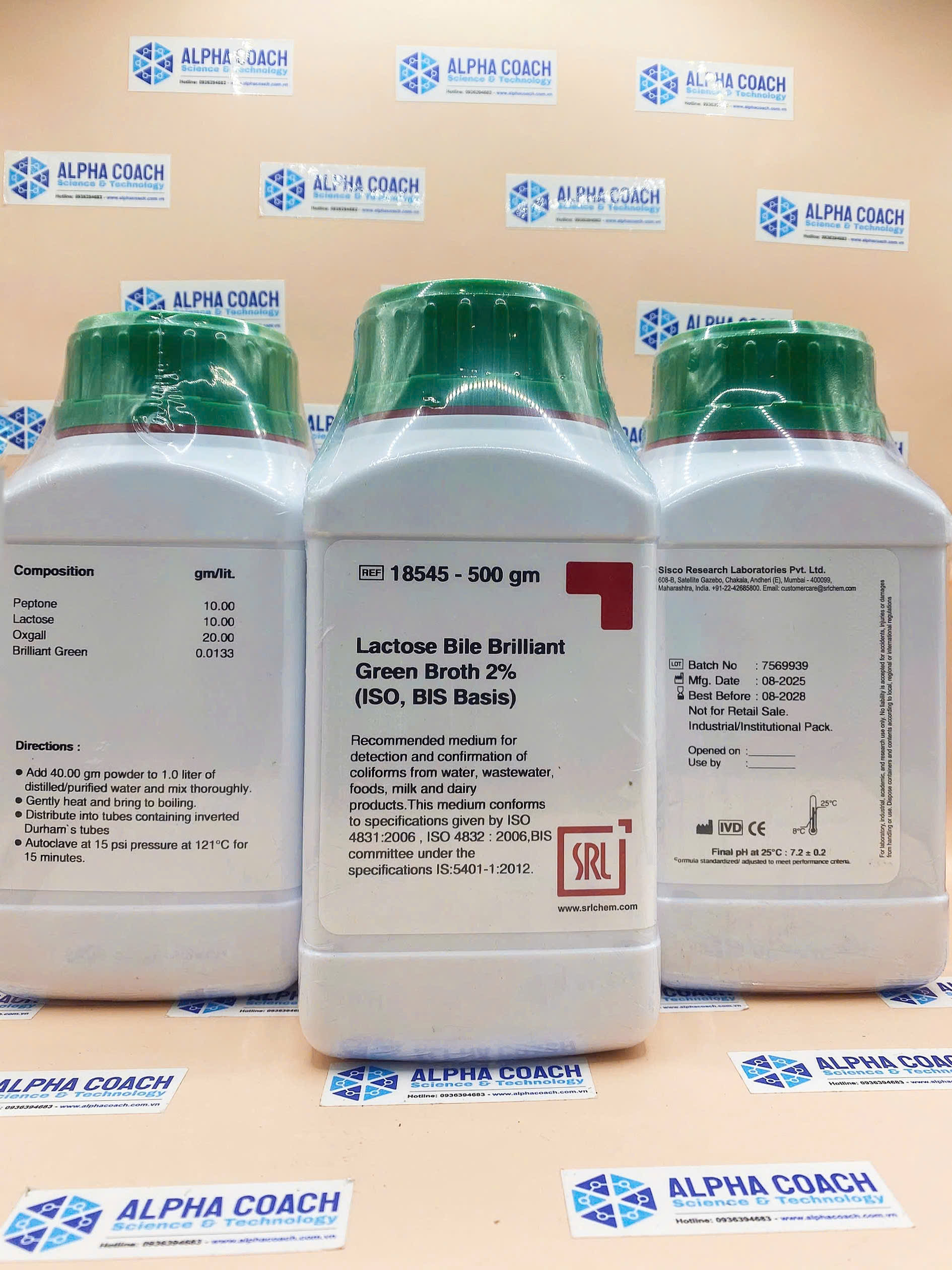 Môi trường vi sinh Lactose Bile Brilliant Green Broth 2% (ISO, BIS Basis), hãng SRL, Ấn Độ